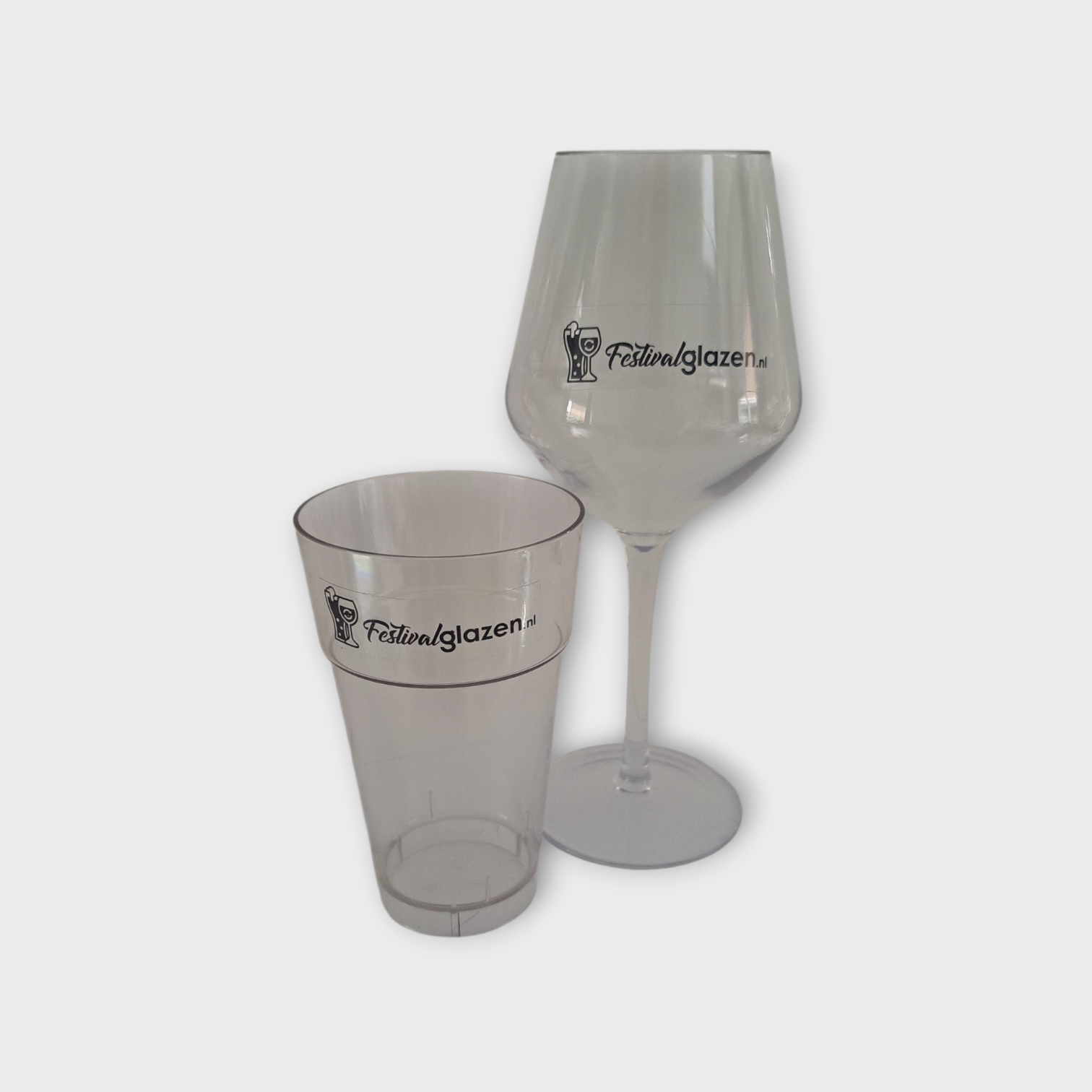 Bij ons kun je glazen volledig aanpassen naar jouw wensen. Laat bijvoorbeeld jouw logo, tekst of unieke ontwerp op de glazen bedrukken, perfect voor promotie of een persoonlijk tintje op jouw evenement. Met verschillende bedrukkingstechnieken en een breed scala aan glasstijlen zorgen we ervoor dat elk glas jouw merk of boodschap perfect vertegenwoordigt. Zo maak je jouw festival of evenement écht uniek!